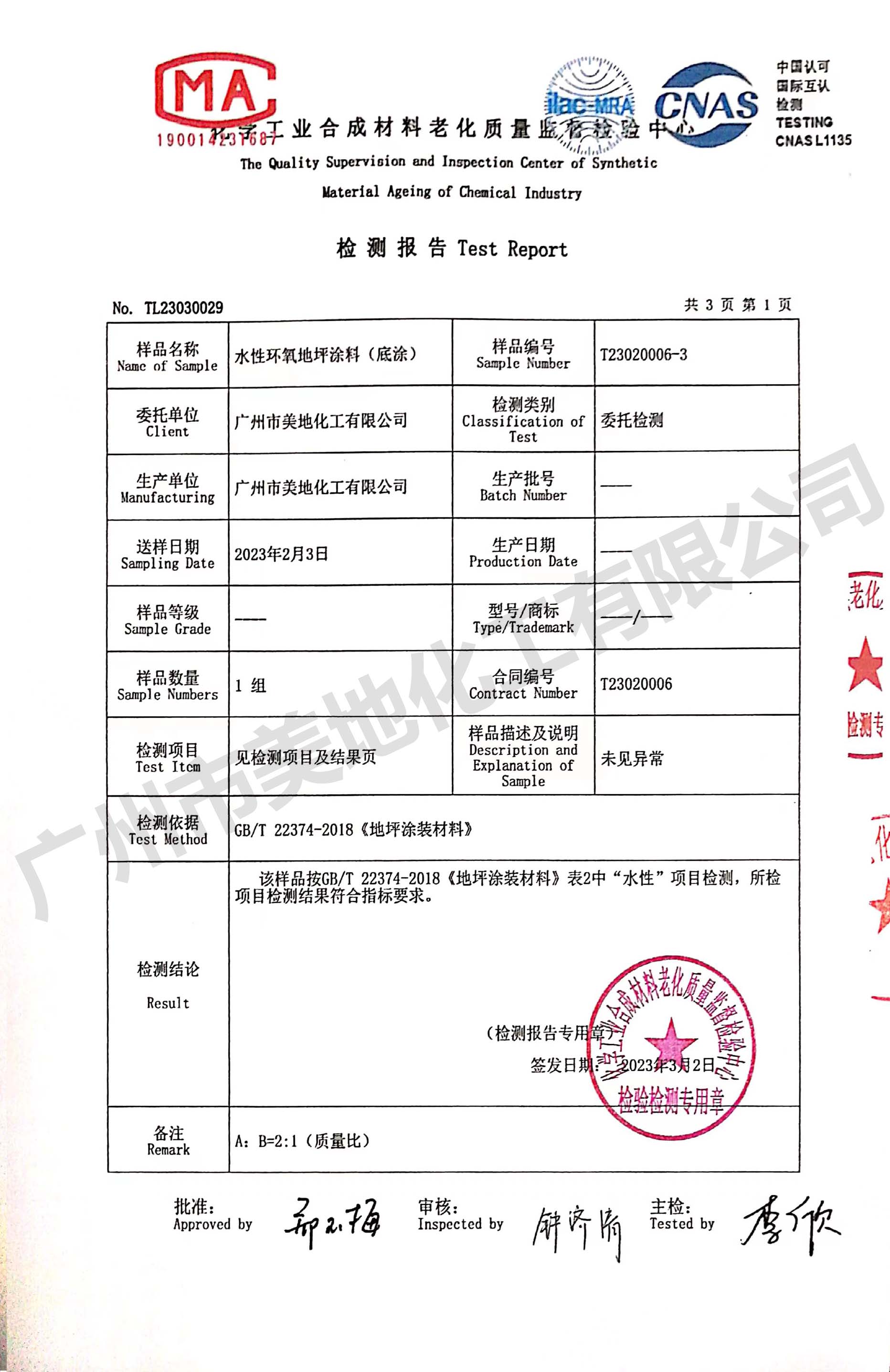 環(huán)氧自流平地坪漆檢驗(yàn)證書(shū)